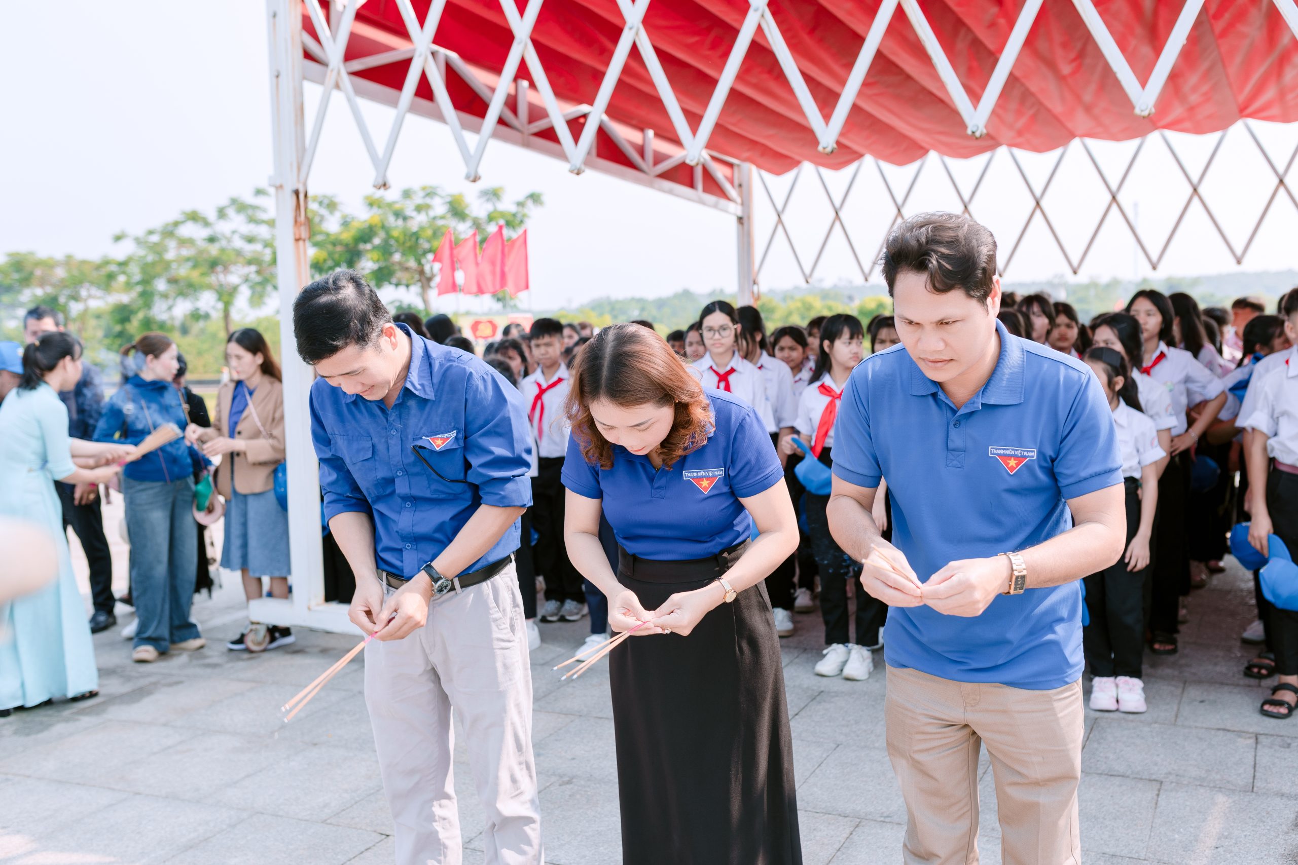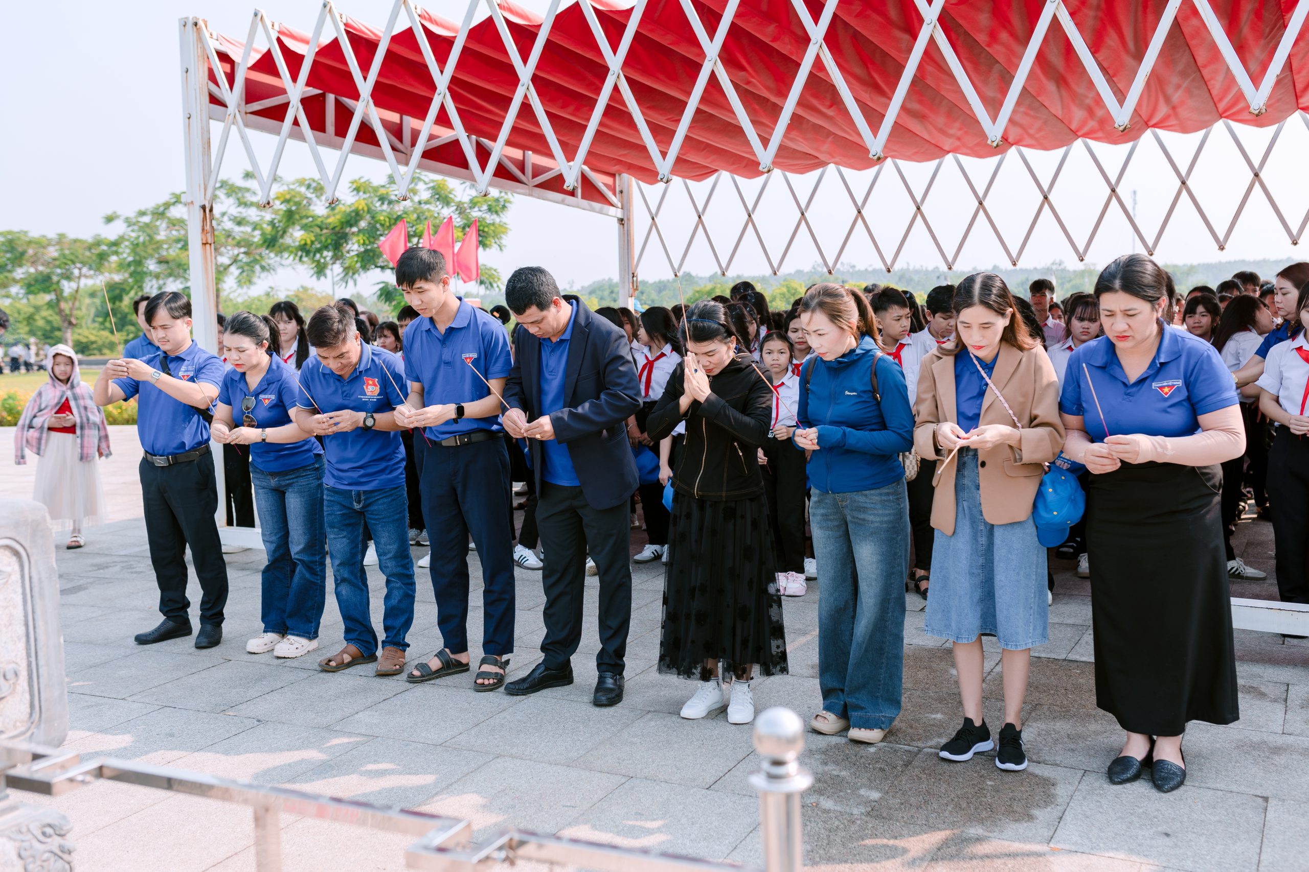 Điểm đến đầu tiên là Tượng đài Mẹ Thứ – biểu tượng thiêng liêng của những người mẹ Việt Nam anh hùng. Trong không khí xúc động, thầy cô và học sinh đã thành kính dâng lên những nén hương, bày tỏ lòng biết ơn sâu sắc đối với sự hy sinh to lớn của Mẹ Thứ cùng bao thế hệ cha anh vì độc lập dân tộc.