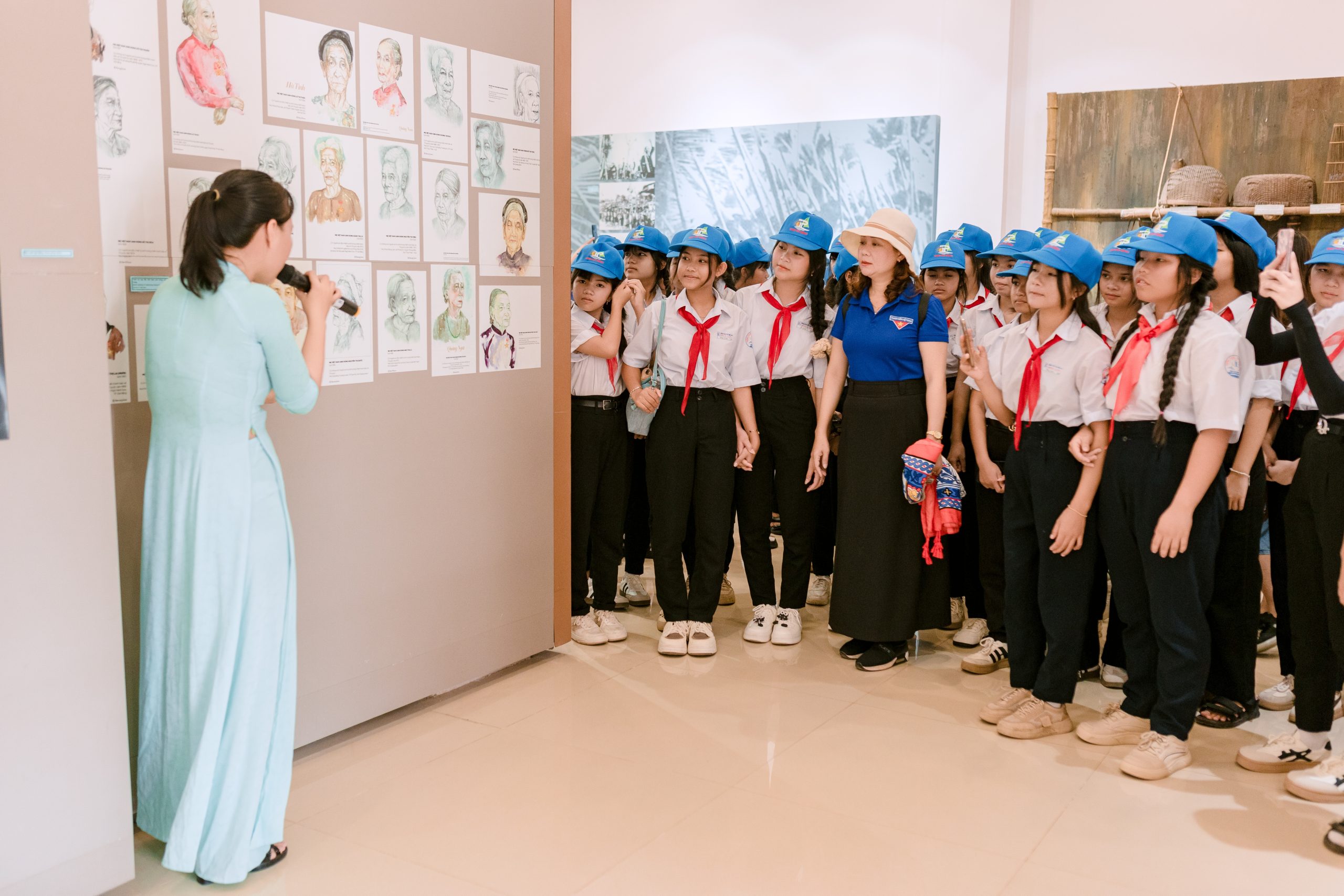 Sau phần lễ dâng hương, học sinh được tham quan khuôn viên tượng đài, tìm hiểu các hiện vật, phù điêu và lắng nghe thuyết minh về lịch sử. Bên cạnh đó, nhà trường còn tổ chức các hoạt động trải nghiệm như thảo luận nhóm, chia sẻ cảm nhận, giúp các em bày tỏ suy nghĩ của mình về lòng biết ơn và trách nhiệm của thế hệ hôm nay.